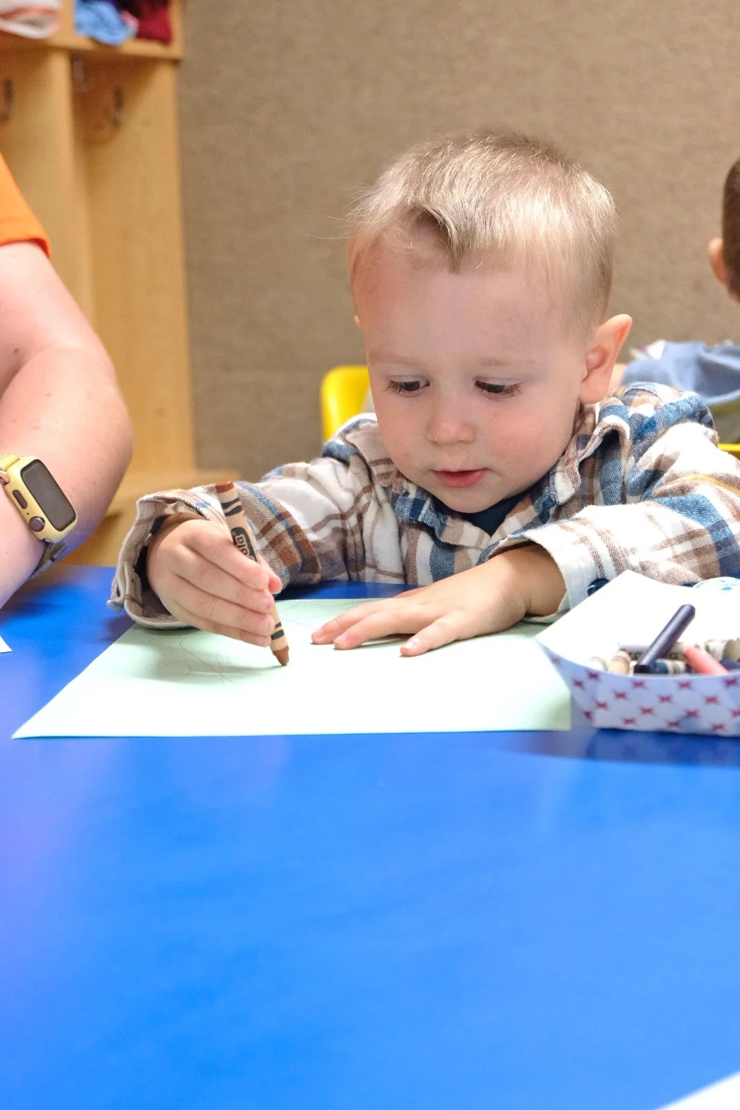 We promote physical development, social and emotional skills and language arts through circle time, songs, and listening to stories.